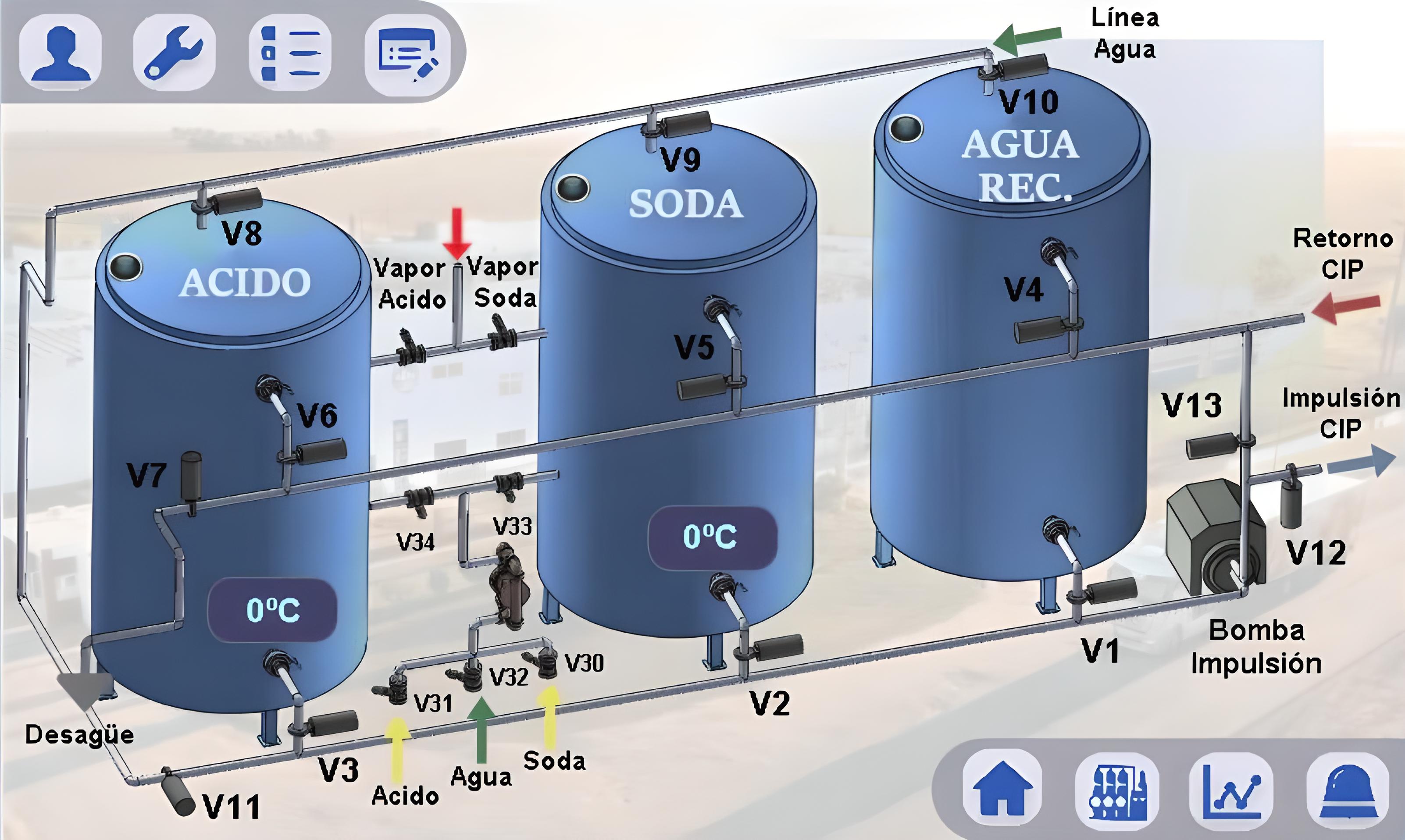 La operación del sistema era en forma manual, aún contando con PLC y HMI, generando que la preparación de productos y las condiciones de lavado, no sean las óptimas.